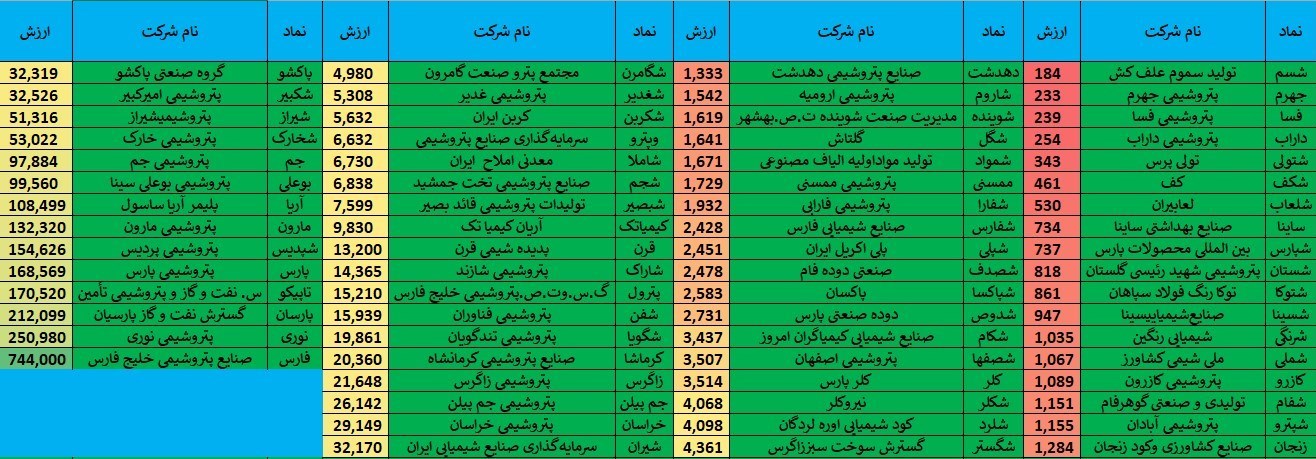 جدول ارزش شرکتهای صنعت محصولات شیمیایی