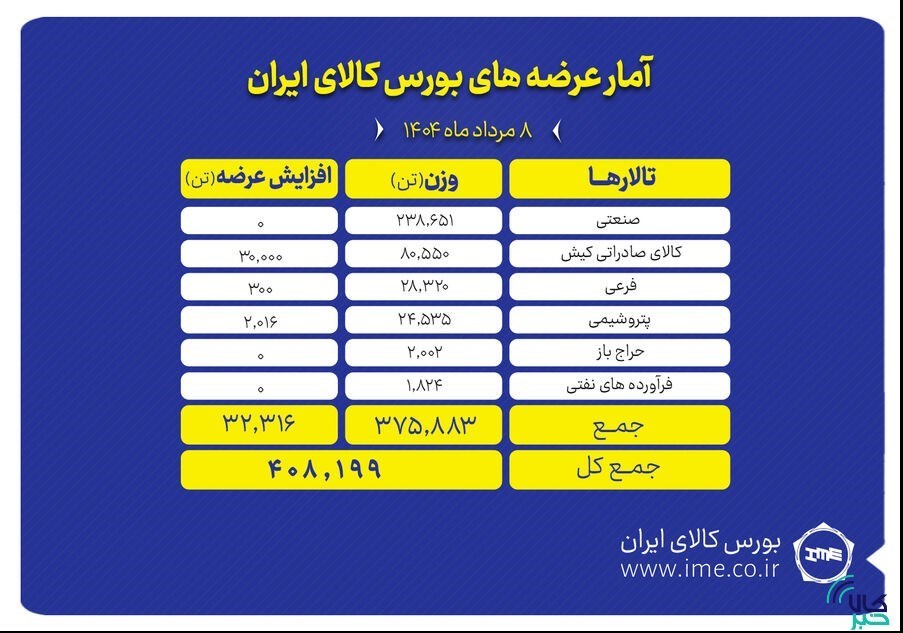 به گزارش پایگاه خبری «عصر بازار» به نقل از کالاخبر ، در تالار صنعتی قرار است 238 هزار و 651 تن فولاد شامل بلوم و بیلت فولادی، میلگرد و ورق گرم روی تابلو برود.