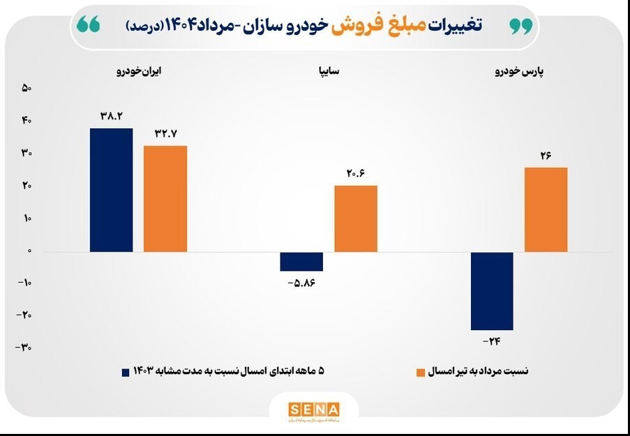 طبق گزارشهای منتشر شده در سامانه کدال، در مرداد امسال ایران خودرو با 390,906,826 میلیون ریال (حدود 39 همت) درآمد فروش داخلی موفقتر از 2 شرکت دیگر بوده است. محصولات کلیدی این شرکت، شامل: گروه پژو، سورن، دنا، رانا و تارا بوده است. سایپا هم با درآمد فروش داخلی 75,213,928 میلیون ریال (حدود 7.5 همت) و عرضه محصولاتی نظیر: تیبا، کوییک، ساینا و شاهین، جایگاه دوم را به خود اختصاص داده است. پارس خودرو نیز با درآمد فروش داخلی 17,687,049میلیون ریال (حدود 1.7 همت) و تولید مدلهایی مانند سهند، کوییک و ZOTYE T300، رشد قابلتوجهی را تجربه کرده است.