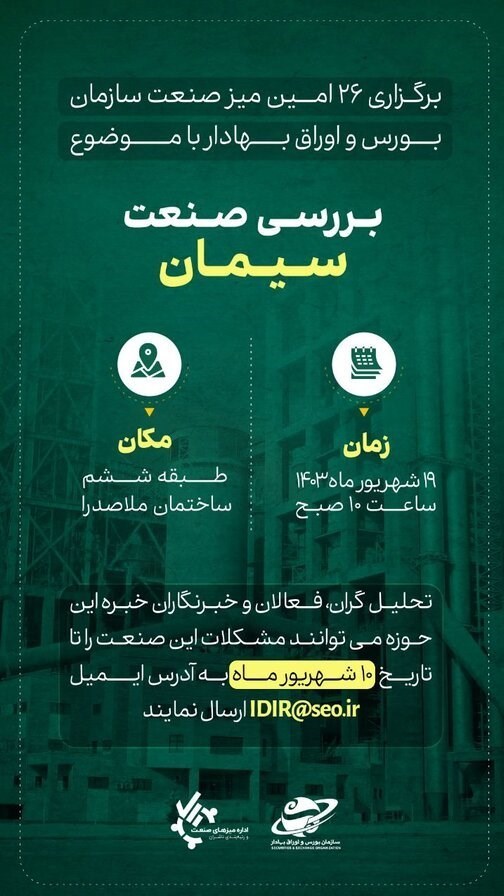 عصر بازار- بیستوششمین نشست میز صنعت سازمان بورس و اوراق بهادار با بررسی موضوع «صنعت سیمان» در شهریور برگزار میشود.