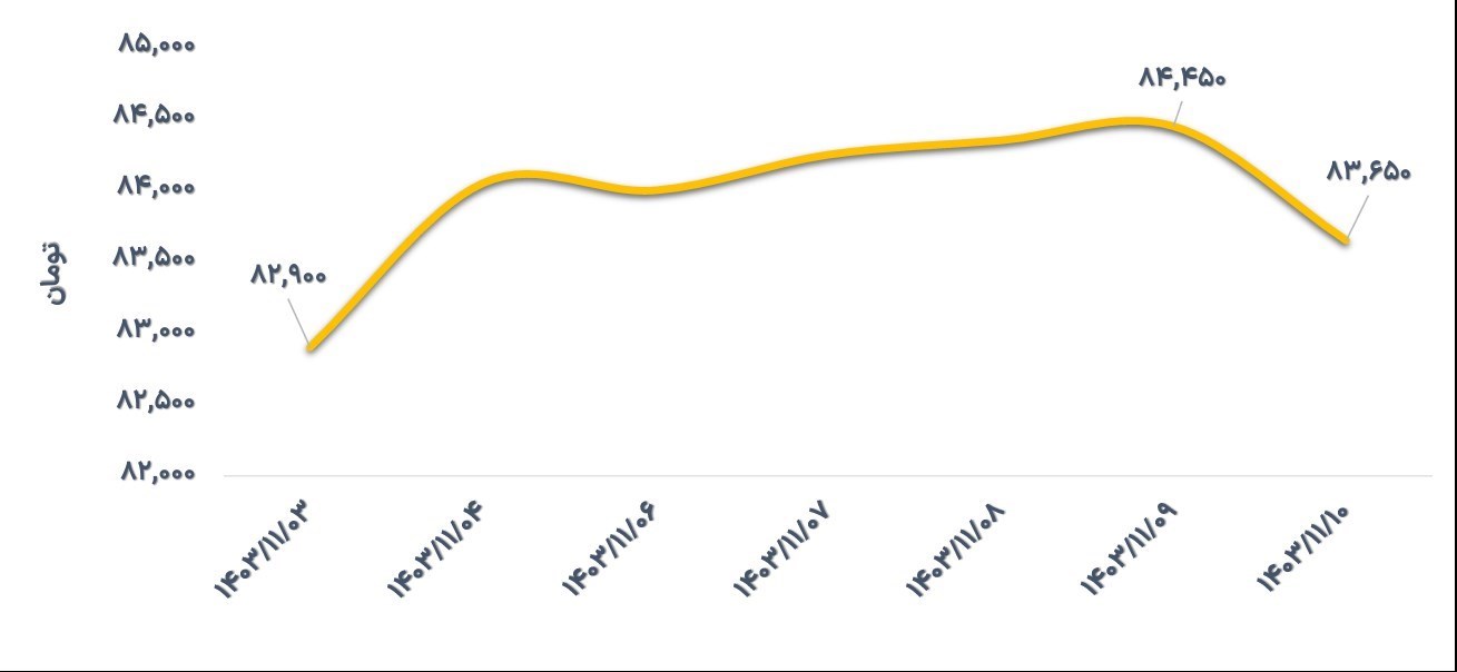 در این هفته نرخ دلار آزاد در محدوده 84,450- 82,900 تومان معامله شد و با رشد 0/9 درصدی به قیمت 83,650 تومان در انتهای هفته رسید. افزایش ابهامات سیاسی به تقویت تقاضا و افزایش قیمت دلار آزاد منجر شد.