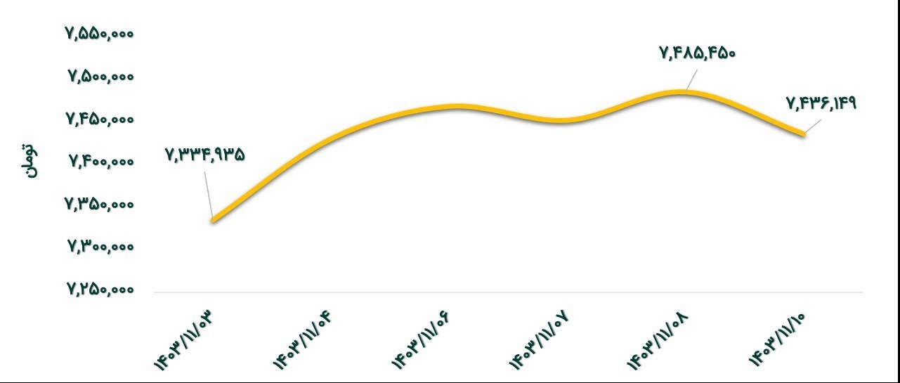 در این هفته قیمت هر گرم شمش طلا در محدوده 7,485,450-7,334,935 تومان معامله شد و در پایان هفته با افزایش 1/4 درصدی به قیمت 7,436,149 تومان رسید.