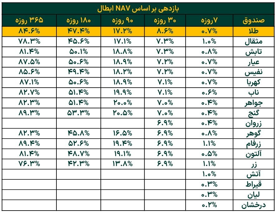 بازده صندوقهای طلا
