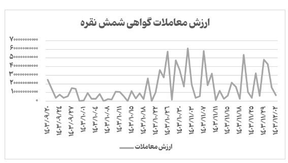 در هفته گذشته، منحنی قیمت گواهی شمش نقره، روندی صعودی را تجربه کرد و برای نخستین بار به بالای 100 هزار تومان رسید. در 3 روز معاملاتی قیمت هر برگه گواهی شمش نقره بالای 100 هزار تومان معامله شد.