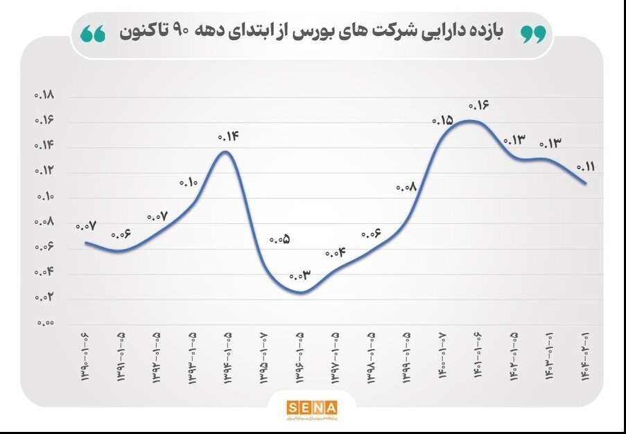 در فروردین 1390، بازده دارایی شرکتهای بورس بهطور میانگین حدود 6.5 درصد بوده است، در حالی که این عدد در فروردین 1404 به حدود 11.2 درصد افزایش یافته است.