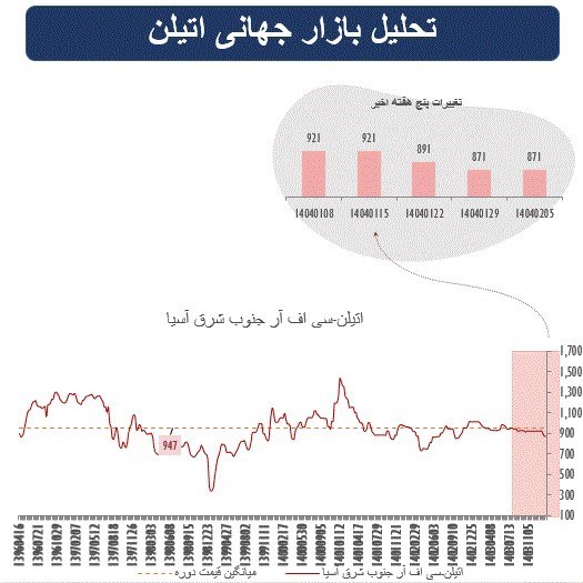 چشم‌انداز تقاضای کل عمدتا ناشی ازرکودی بودن بازار پلیمرهای کلیدی، کاهشی است. قیمت محموله‌های ایالات‌متحده که برای ماه ژوئن بودند نیز در این هفته در محدوده 780 تا 790 دلار بر تن CFR شمال‌شرق آسیا گزارش شد، اما با توجه به زمان انتظار طولانی و عدم‌قطعیت‌های کوتاه‌مدت، تقاضای خرید کم بود.