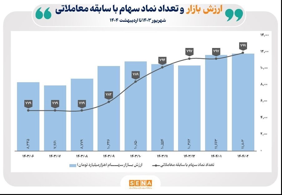 به گزارش پایگاه خبری «عصر بازار» به نقل از سنا، دادههای آماری اداره تحلیلهای اقتصادی و ریسک سازمان بورس و اوراق بهادار نشان میدهد؛ در پایان شهریور سال گذشته تعداد 779 نماد با سابقه معاملاتی به ارزش 8،466 همت و 104 نماد بدون سابقه معاملاتی عضو بازارهای سهام بورس تهران و فرابورس ایران بودهاند و در اردیبهشت ماه امسال تعداد نمادهای با سابقه معاملاتی به 799 با ارزش بازار 11،967 همت و 116 نماد بدون سابقه معاملاتی افزایش یافته است. بر این اساس، در حاضر مجموعاً 915 نماد معاملاتی در بازار سهام ایران لیست شدهاند.