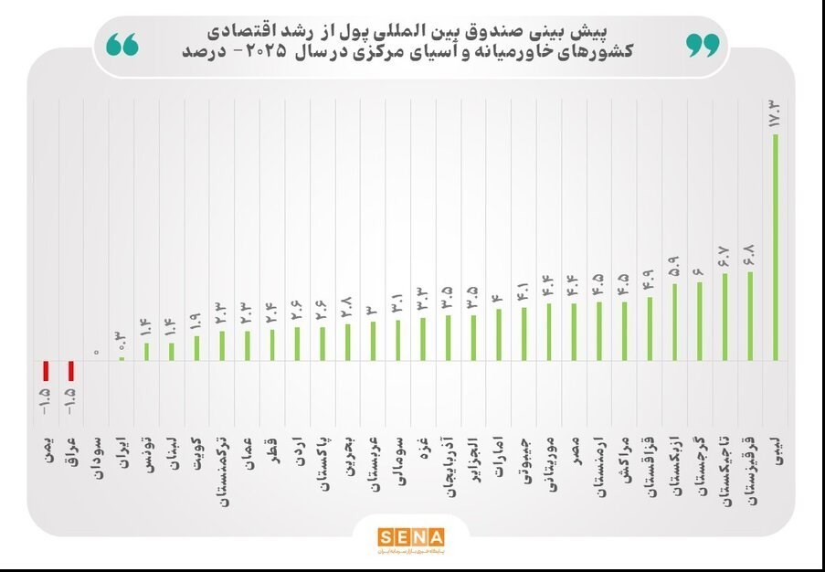 با وجود این چالشها، صندوق بینالمللی پول رشد اقتصادی خاورمیانه را در سال 2025 میلادی در حدود 3.4 درصد پیشبینی کرده است.