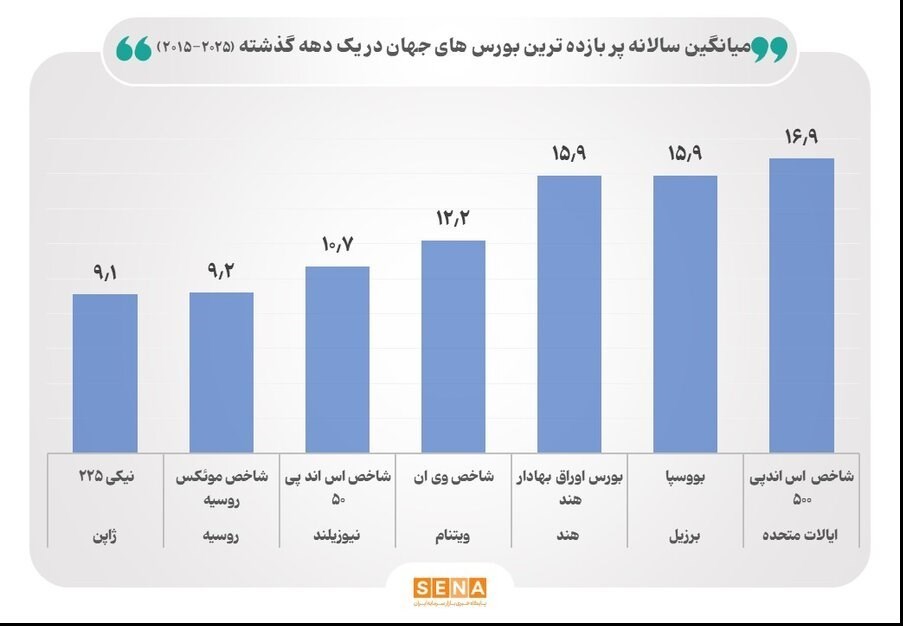 عصر بازار- بورسهای آمریکا، بر مبنای عملکرد شاخص S&P ۵۰۰، با ثبت میانگین بازده سالانه نزدیک به ۱۷ درصد در یک بازه ۱۰ ساله (۲۰۱۵ تا ۲۰۲۵ میلادی)، عنوان پربازدهترین بازار سرمایه جهان را به خود اختصاص دادند. در این رتبهبندی که بر اساس ویژوال کاپیتالیست منتشر شده، بورسهای برزیل، هند و ویتنام نیز عملکردی چشمگیر در میان بازارهای منتخب داشتهاند.