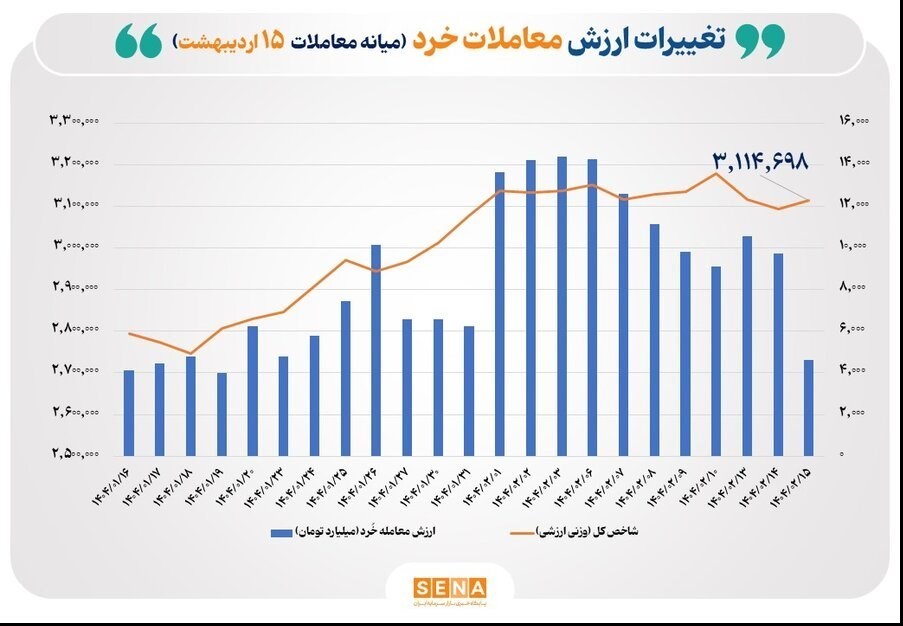 عصر بازار- دادههای آماری اداره تحلیلهای اقتصادی و ریسک سازمان بورس و اوراق بهادار نشان میدهد؛ ارزش معاملات خرد سهام تا نیمه معاملات امروز، دوشنبه ۱۵ اردیبهشت ۱۴۰۴ بازار، به مرز ۵ همت رسید.