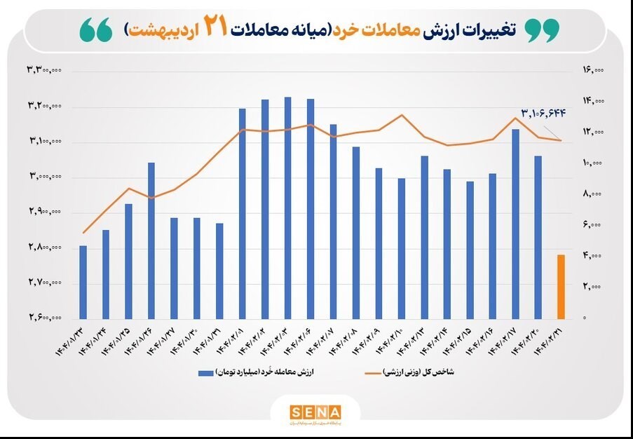عصر بازار- بر اساس داده‌های آماری اداره تحلیل‌های اقتصادی و ریسک سازمان بورس، ارزش معاملات خُرد سهام تا نیمه معاملات امروز به بیش از ۴ همت رسید.