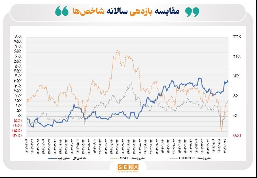 مقایسه این آمارها نشان میدهد؛ بازار سهام ایران از اواخر آبان ماه سال قبل تاکنون عملکرد بهتر و بازده سالانه بیشتری در مقایسه با بازار سهام کشورهای در حال توسعه و کشورهای اسلامی مشمول در شاخص شریعت داشته است.