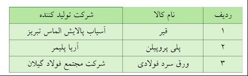 به این ترتیب کالاهای زیر در بازار اصلی پذیرش شدند: