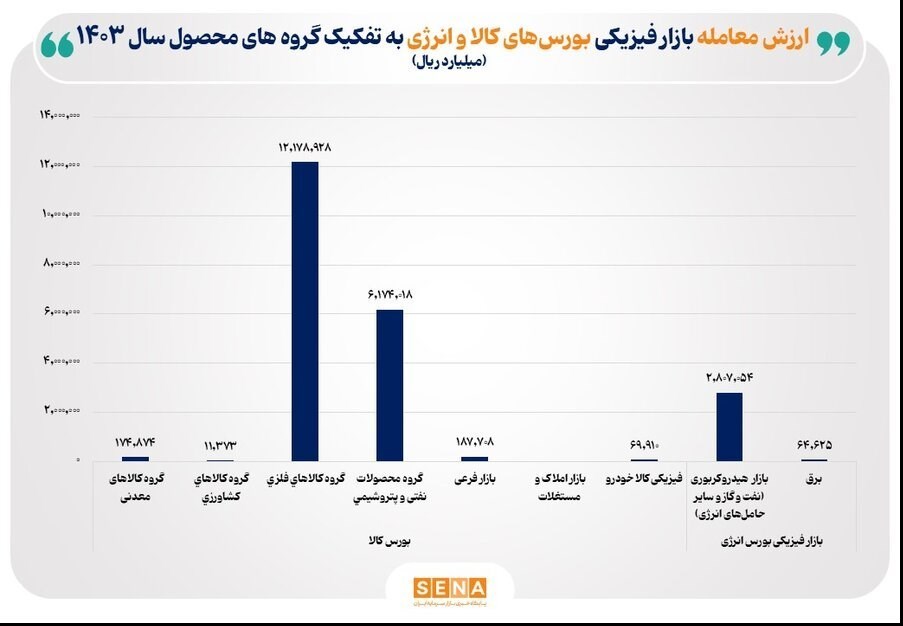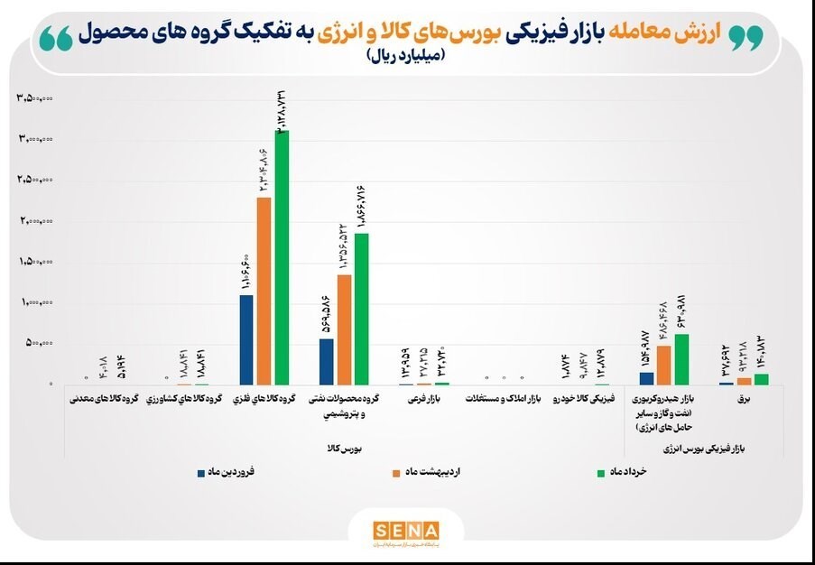 در خرداد ماه امسال، ارزش معاملات بازار فیزیکی بورس کالا شامل کالاهای معدنی، کشاورزی، صنعتی، محصولات نفتی و پتروشیمی، بازار فرعی، بازار املاک و مستغلات و خودرو به 134 همت رسید. دادههای این گزارش نشان میدهد در دوره یادشده، گروه کالاهای صنعتی با 82.3 همت بیشترین ارزش معاملات را در میان گروههای کالایی به خود اختصاص داده است. ارزش معاملات این گروه کالایی در اردیبهشت ماه 119.8 همت بوده است.