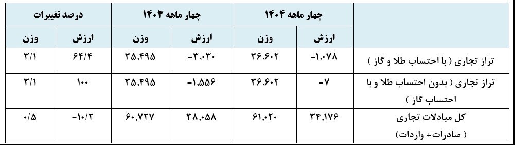 وی با بیان اینکه در عملکرد تجارت خارجی در چهارماهه 1404 در مجموع با 81 کشور دارای تراز تجاری مثبت به میزان 5.8 میلیارد دلار تبادلات داشته ایم گفت: با 60 کشور تراز تجاری منفی به میزان 6.9 میلیارد دلار داشته ایم.