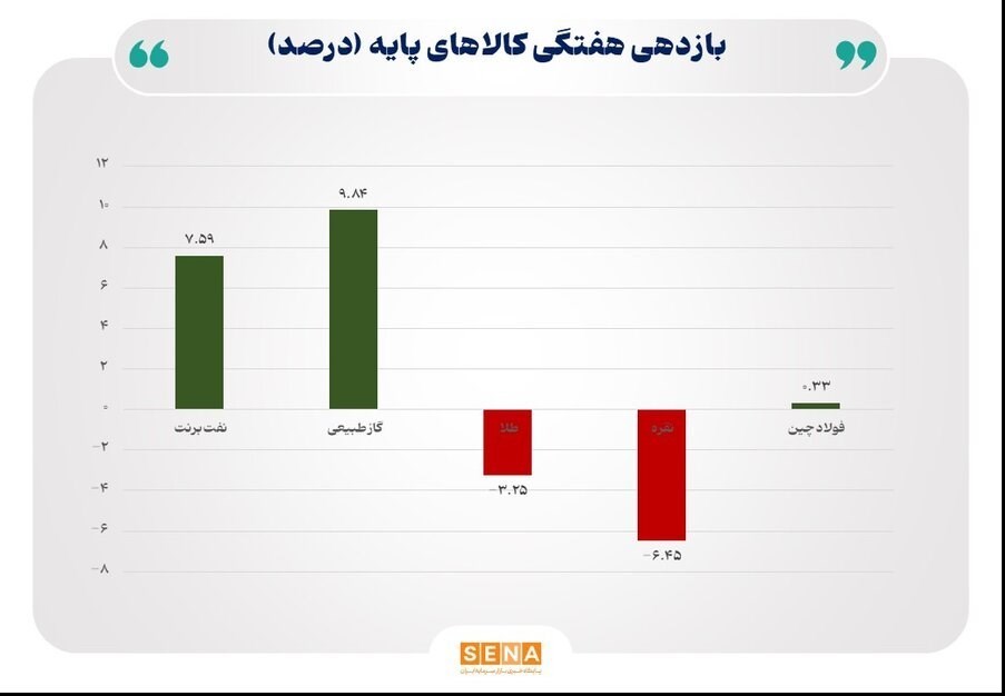 عصر بازار- بازارهای جهانی در هفتهای پرتنش و ناپایدار، شاهد واگرایی آشکاری میان گروههای کالایی بودند. در حالیکه بهای نفت برنت با جهش ۷.۵۹ درصدی و گاز طبیعی با رشد چشمگیر ۹.۸۴ درصدی تحت تأثیر نگرانی از عرضه جهانی و افزایش تقاضای فصلی صعود کردند، فلزات گرانبها مسیر معکوسی را پیمودند. طلا با افت ۳.۲۵ درصدی و نقره با کاهش سنگین ۶.۴۵ درصدی در پی تقویت دلار و خروج سرمایهگذاران از داراییهای امن سقوط کردند. در همین حال، فولاد چین با رشد خفیف ۰.۳۳ درصدی از حمایت وعدههای دولتی برای تحریک بخش ساختوساز سود برد و هفته را با ثباتی نسبی به پایان رساند.
