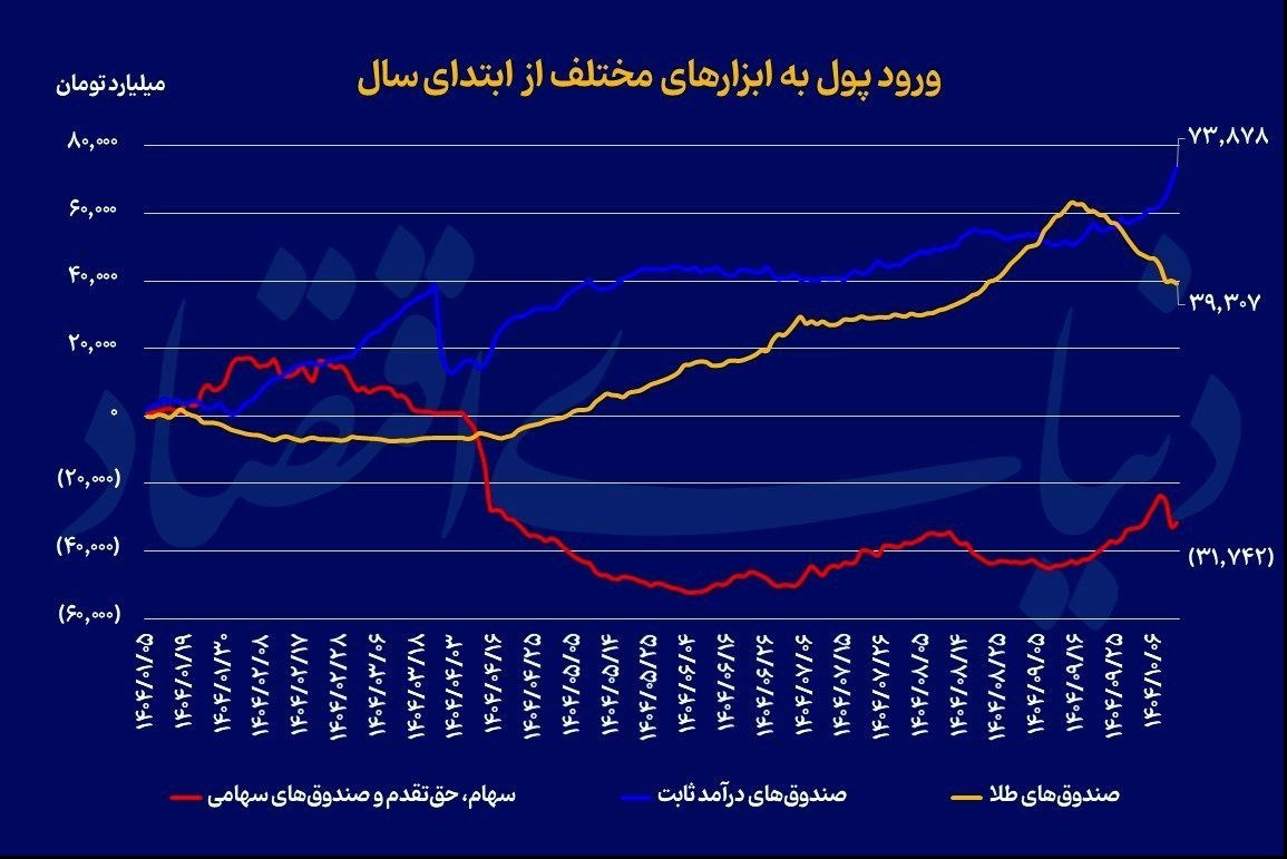 عصر بازار- بررسی جریان ورود و خروج پول حقیقی به ابزارهای مختلف سرمایهگذاری از ابتدای سال جاری، تصویری گویا از ترجیحات سرمایهگذاران خرد در مواجهه با نااطمینانیهای اقتصادی و مالی ارائه میدهد. دادههای آماری نشان میدهد که در این دوره، صندوقهای درآمد ثابت با جذب ۷۳هزار و ۸۷۸میلیارد تومان پول حقیقی، در صدر فهرست ابزارهای مالی با بیشترین اقبال سرمایهگذاران خرد قرار گرفتهاند. پس از آن، صندوقهای طلا با جذب ۳۹هزار و ۳۰۷میلیارد تومان سرمایه حقیقی، جایگاه دوم را به خود اختصاص دادهاند. این ارقام در نگاه نخست، بیانگر غلبه نگاه محافظهکارانه در میان سرمایهگذاران و تمایل به ابزارهایی با ریسک کمتر یا پوششدهنده ریسکهای تورمی است.