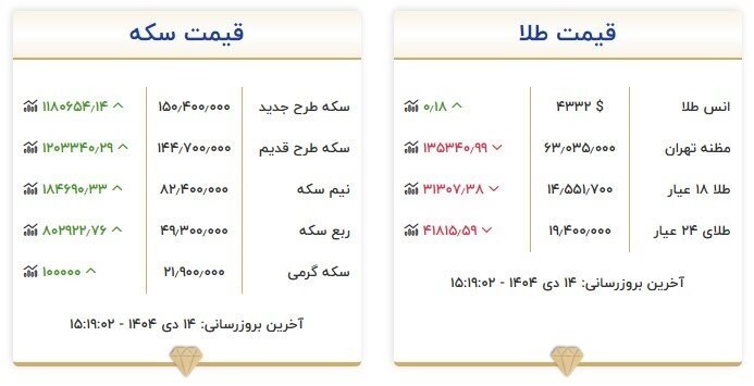 در بازار مسکوکات طلا نیز نرخ ها افزایشی بود، به طوری که هر قطعه سکه تمام با افزایش یک میلیون و 180 هزار و 654 تومانی به قیمت 150 میلیون و 400 هزار تومان فروخته شد و سکه تمام طرح قدیم نیز با افزایش یک میلیون و 203 هزار و 340 تومانی، 144 میلیون و 700 هزار تومان عرضه شد.