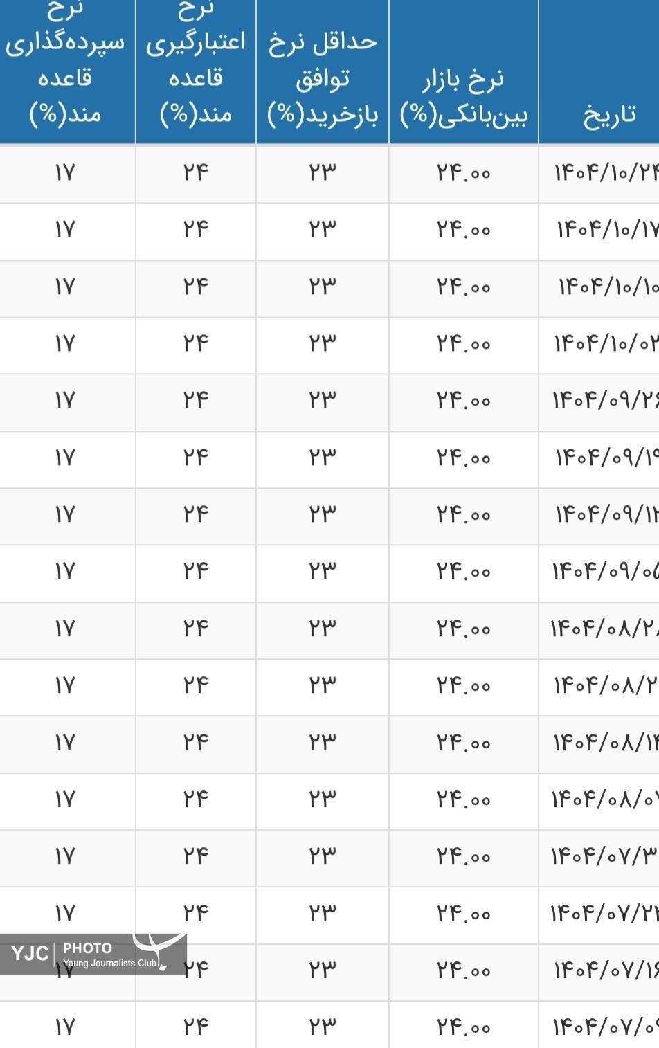 نرخ بهره بین بانکی در شانزدهمین هفته متوالی با ثبات باقی‌ماند