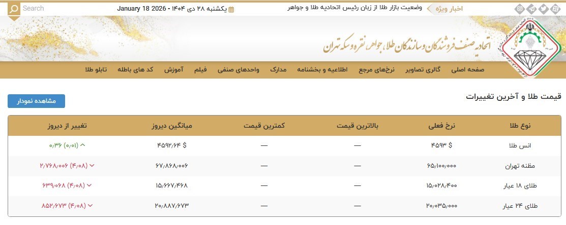 قیمت طلا و آخرین تغییرات آن بر اساس اعلام اتحادیه