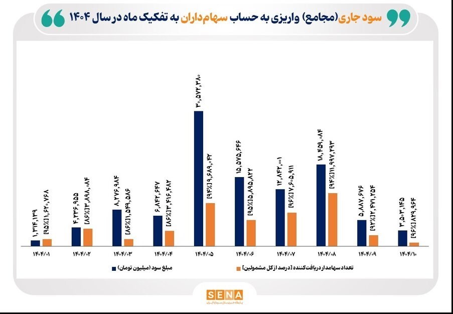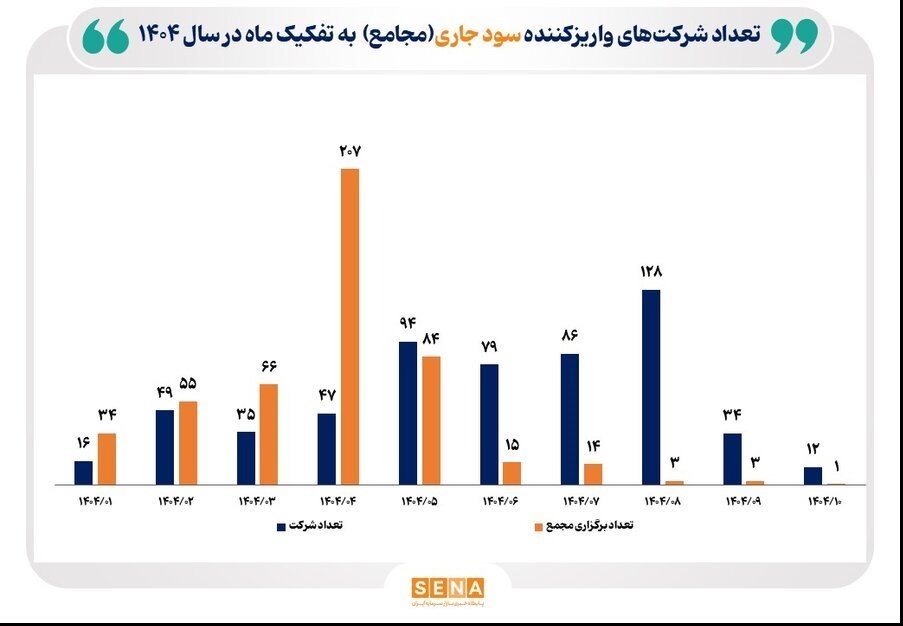 به گزارش پایگاه خبری «عصر بازار» به نقل از سنا، در 10 ماه سال جاری 580 شرکت سهامی به واریز سود به حساب حدود 49 میلیون سهام‌دار اقدام کرده‌اند. تیر امسال بیش‌ترین تعداد مجامع شرکت‌ها برگزار شد.