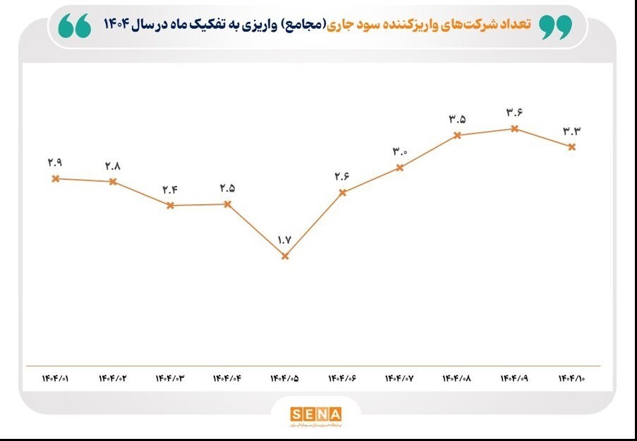 مطابق نمودار زیر، تعداد شرکت واریزکننده سود به حساب سهام‌داران در 4 ماه پس از آن بیش‌ترین میزان بوده است.