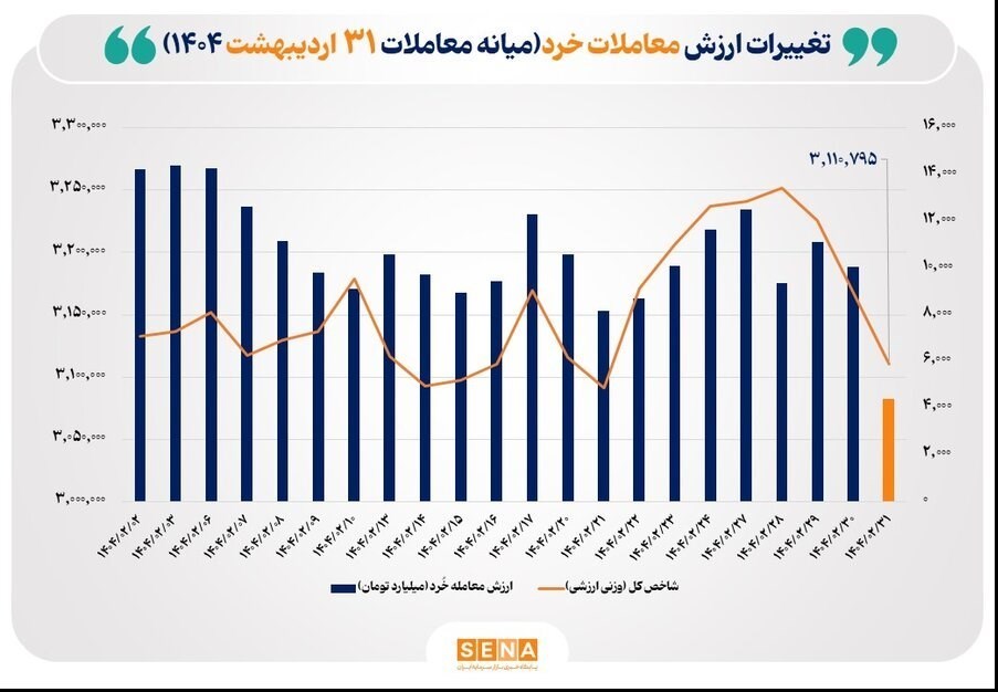 عصر بازار- بر اساس دادههای آماری اداره تحلیلهای اقتصادی و ریسک سازمان بورس و اوراق بهادار، ارزش معاملات خُرد سهام تا نیمه معاملات امروز چهارشنبه ۳۱ اردیبهشت از مرز ۴ همت عبور کرد.