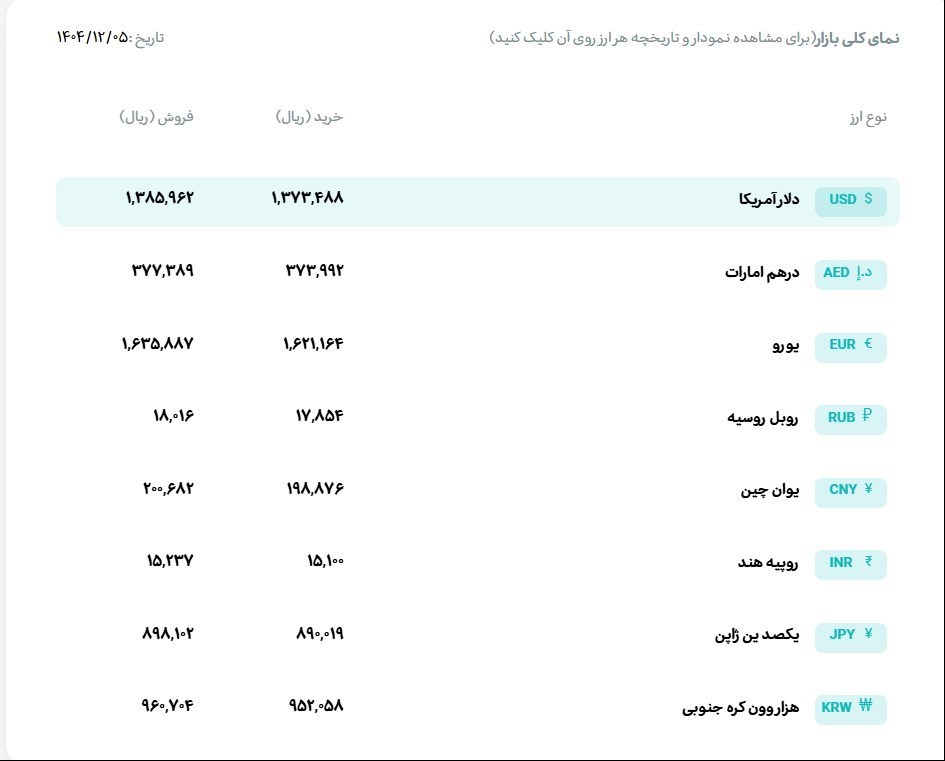 نرخ فروش حواله هزاروون کره جنوبی 96 هزار و 70 تومان و قیمت خرید حواله آن 95 هزار و 205 تومان است.