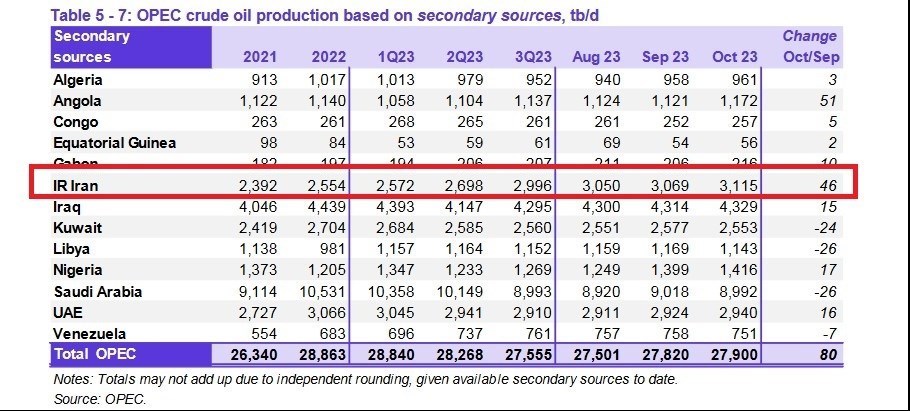 تولید نفت ایران در سه ماهه سوم امسال نسبت به سه ماهه سوم 2022 نیز افزایش 431 هزار بشکهای را نشان میدهد.