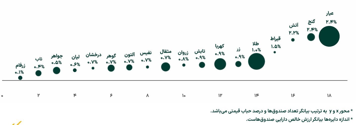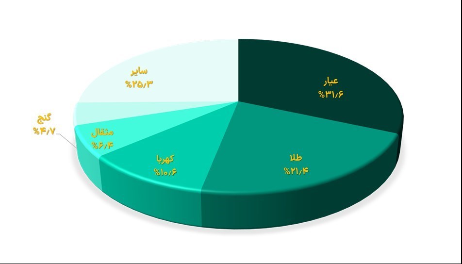 در نمودار زیر سهم از بازار صندوقهای طلا در تاریخ 1403/11/17 ارائه شده است.