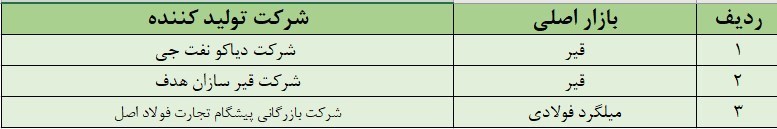 به این ترتیب کالاهای زیر در بازار اصلی پذیرش شدند:
