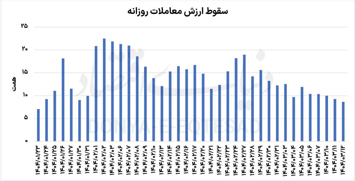 به گزارش پایگاه خبری «عصر بازار» به نقل از دنیای اقتصاد، معاملات خرد  بورس طی روز دوشنبه، حدود 8همت ارزش‌گذاری شد که این رقم، کم‌ترین میزان از 23فروردین امسال است، ضمن اینکه تنها 80میلیارد‌تومان پول حقیقی به بازار سهام جذب شده‌است. قوت‌‌‌‌‌‌گرفتن احتمال توافق و افت قیمت دلار و شکست کانال82هزار‌تومان توسط ارز آمریکایی، یکی دیگر از دلایل ثبات و تعادل در بازارسهام است. به‌نظر می‌رسد، بورس تهران به‌دنبال آن است تا وعده‌‌‌‌‌‌هایی رنگی که از سیاستگذاران شنیده می‌شود، عملیاتی شود. در حال‌حاضر به لطف خبردرمانی، کانال 3.1میلیون به واسطه حمایت مهم آن، حفظ شده‌است، اما کارآیی اخبار ممکن است به مرور تضعیف شده و می‌تواند رخوت بیشتری را بر بازار حاکم کند.