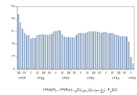 نگاهی به نرخ سود بازار بین بانکی در فاصله زمانی آبان 1394 تا خرداد 1399 نشان می دهد با وجود کاهش نرخ تورم انتظاری، نرخ سود بازار بین بانکی به شدت در مقابل کاهش مقاومت کرده است و تنها زمانی دچار کاهش شده که واگذاری ارزهای مسدودی به بانک مرکزی سبب افزایش شدید ذخایر در بازار بین بانکی در اواخر 1398 و اوایل 1399 شد.