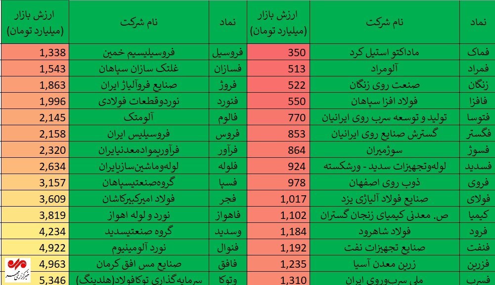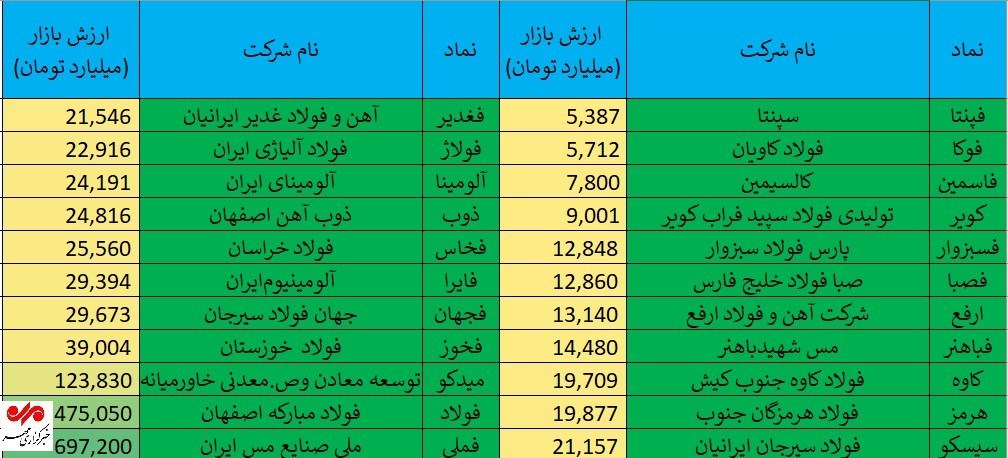 جدول ارزش شرکتهای صنعت فلزات اساسی