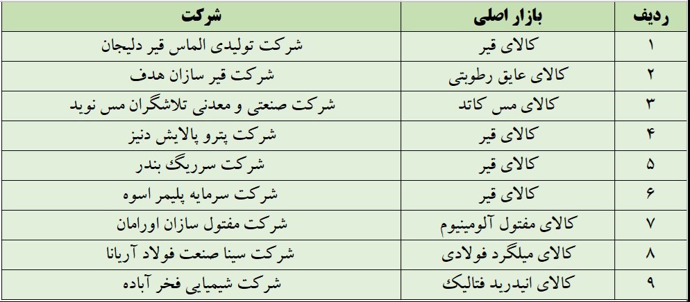 به این ترتیب کالاهای زیر در بازار اصلی پذیرش شدند: