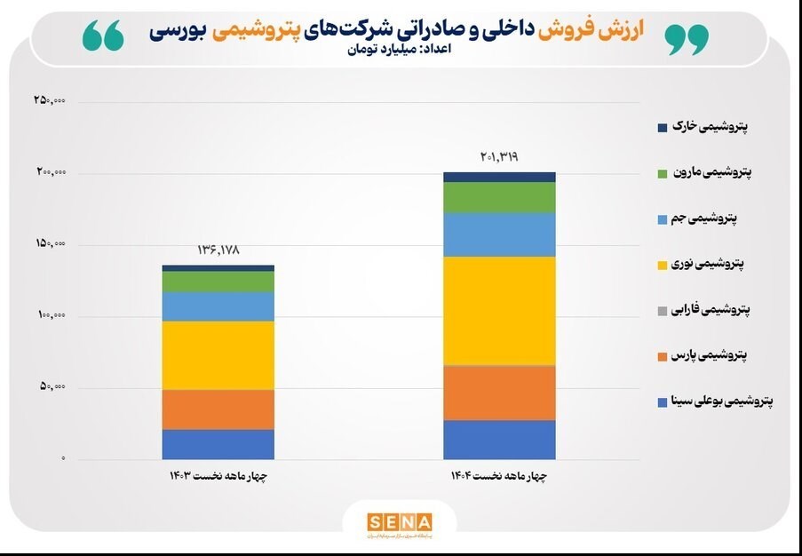 به این ترتیب، گزارشهای مالی شرکتهای پتروشیمی نشان میدهد: در 4 ماه نخست امسال، مجموع فروش داخلی و صادراتی «پتروشیمی نوری» با 75 هزارمیلیارد تومان، «پتروشیمی پارس» با 37 هزارمیلیارد تومان و «پتروشیمی جم» با 31 هزارمیلیارد تومان رتبه اول تا سوم بوده است. عملکرد این شرکتها از این حیث نسبت به مدت مشابه سال قبل، به ترتیب 60، 36 و 50 درصد رشد مثبت داشته است.