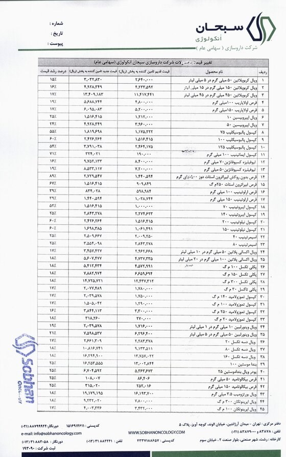 شرکت داروسازی سبحان انکولوژی با نماد《دسانکو》در اطلاعیه افشای اطلاعات گروه الف از افزایش نرخ فروش 75 قلم از محصولات دارویی شرکت خبر داد.