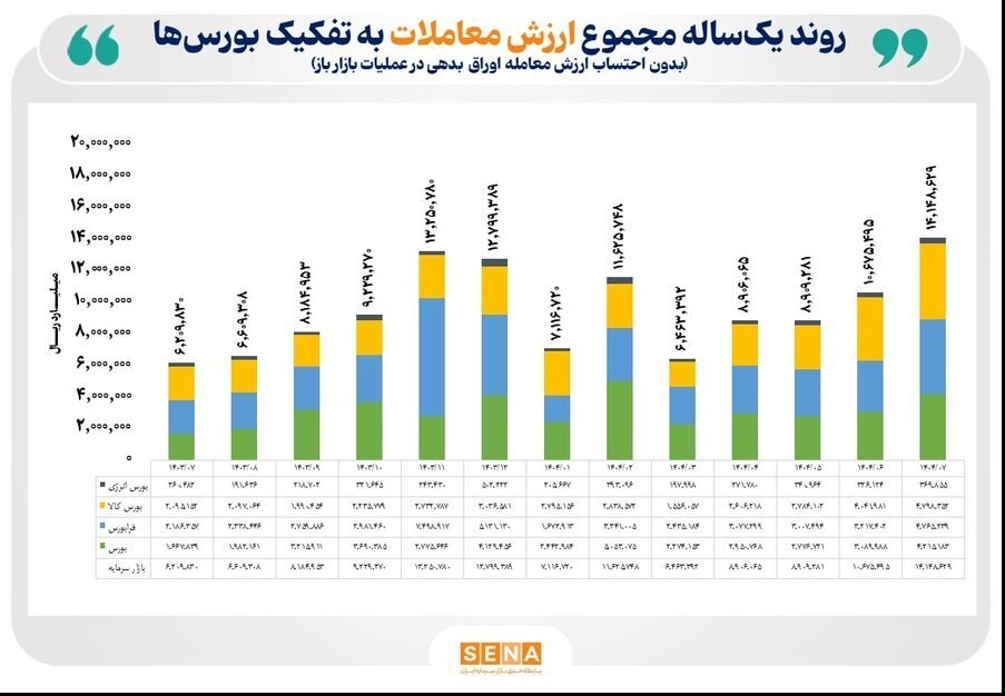مجموع ارزش مبادلات بورس­‌ها به ۱،۴۱۴ همت رسید