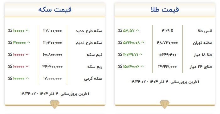در بازار مسکوکات طلا نیز نرخ ها کمی افزایشی بود، به طوریکه هر قطعه سکه تمام با افزایش 100 هزار تومانی به قیمت 117 میلیون و 100 هزار تومان فروخته شد و سکه تمام طرح قدیم نیز با افزایش 300 هزار تومانی، 111 میلیون و 300 هزار تومان عرضه شد.