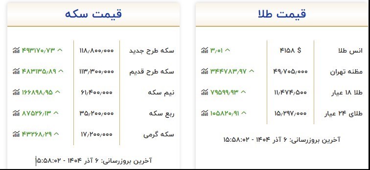 به گزارش پایگاه خبری «عصر بازار» به نقل از ایرنا، اتحادیه طلا و جواهر تهران برای روز پنجشنبه ششم آذرماه، قیمت هر قطعه سکه تمام طرح قدیم را 113 میلیون و 300 هزار تومان ثبت کرد که نسبت به روز گذشته 493 هزار تومان افزایش یافت.