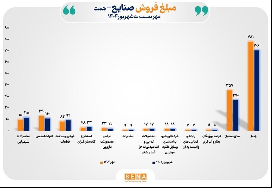 به گزارش پایگاه خبری «عصر بازار» به نقل از سنا، بررسی آمار فروش صنایع بورسی در مهر 1404 نشان می‌دهد تصویر فروش شرکت‌ها با وجود رشد مجموع فروش بین صنایع مختلف متفاوت بوده است و در این ماه فروش کل صنایع با ثبت رقم 781 همت نسبت به شهریور رشد 11 درصدی را تجربه کرد.