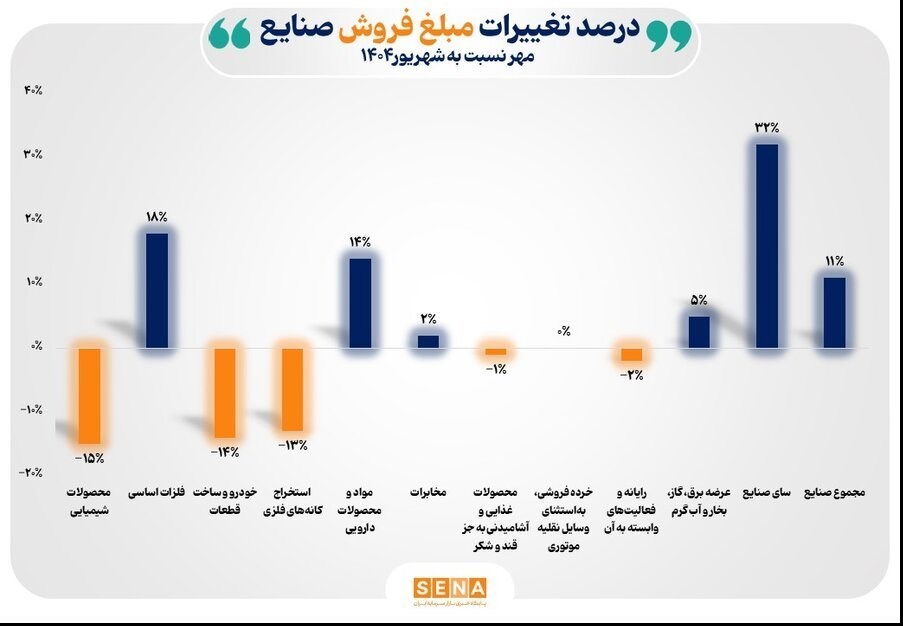 افزایش ۱۱ درصدی فروش ماهانه صنایع بورس در مهر ۱۴۰۴