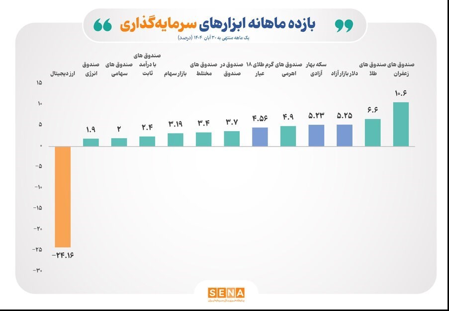 در آبان 1404، صندوقهای زعفران و صندوقهای طلا به ترتیب با کسب مثبت «10.6» و «6.6» درصد بازده موزون ماهانه، جزو صدرنشینان کسب بازده در بین کلاسهای دارایی بودهاند.