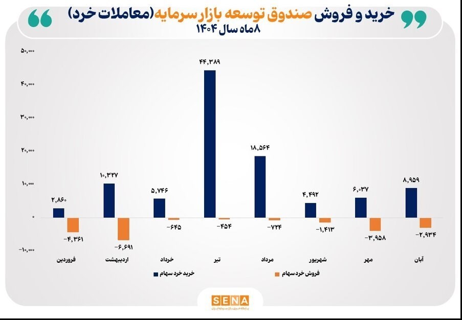 صندوق توسعه بازار بیش‌ترین خرید خرد سهام را در ماه‌های تیر و مرداد امسال، یعنی درست بعد از جنگ 12 روزه، با 44 و 18 همت انجام داده است.