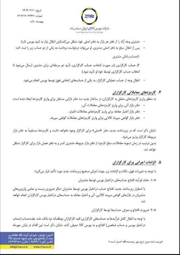 • انتقال وجه از حساب عملیاتی کارگزار به حساب انتخابی توسط بورس انجام خواهد شد.