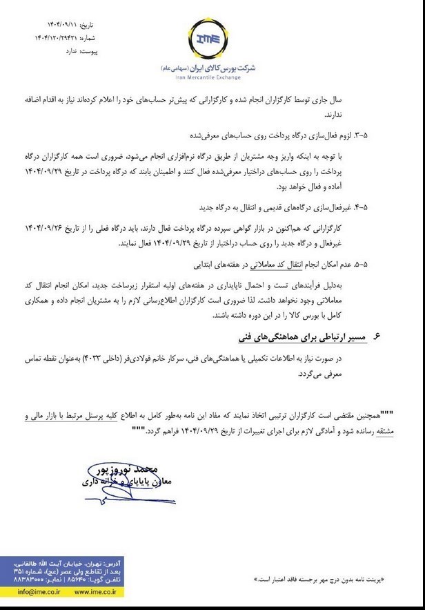 • عدم امکان انتقال کد معاملاتی در هفتههای ابتدایی اجرای زیرساخت.