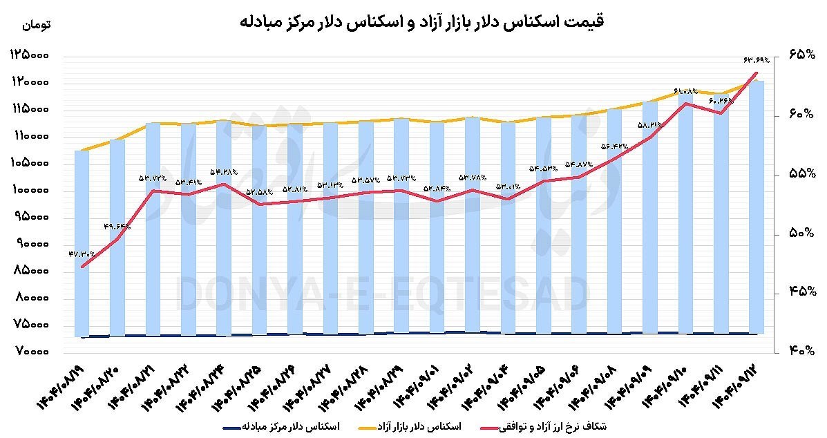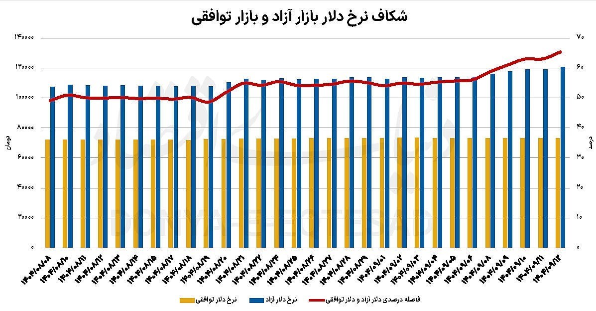 در شرایط کنونی، اختلاف میان نرخ ارز توافقی و بازار آزاد به شدت گسترده شده و به بیشترین فاصله خود در سال جاری رسیده است؛ بهطوریکه دلار در بازار آزاد با قیمت حدود 120 هزار تومان، 65 درصد بیشتر از دلار توافقی با قیمت 73هزار تومان معامله میشود. این شکاف تاریخی نشاندهنده فشار شدید بر منابع ارزی و ناکارآمدی سیاستهای تثبیت نرخ ارز است. محدودیت عرضه ارز در کانالهای رسمی و افزایش تقاضا برای حفظ ارزش داراییها در پی تورم بالا، از مهمترین عواملی هستند که به تعمیق این فاصله دامن زدهاند. ایجاد چنین اختلاف قیمتی میان ارز رسمی و نرخ آزاد، مسیر بهرهبرداریهای رانتی را برای دریافتکنندگان ارز رسمی هموار کرده و انگیزه فروش ارز توافقی در بازار آزاد را افزایش میدهد. پیامدهای این شکاف شامل کاهش منابع ارزی کشور، رشد فعالیتهای غیررسمی، تشدید فشار بر اقتصاد و افزایش نابرابری در دسترسی به ارز است. تجربههای گذشته نشان داده که کاهش این فاصله تنها با نزدیکتر شدن نرخ ارز توافقی به نرخ بازار آزاد و تامین مناسب ارز در بازار امکانپذیر است؛ مسیری که برای کاهش پیامدهای پیشرو ناگزیر باید طی شود.