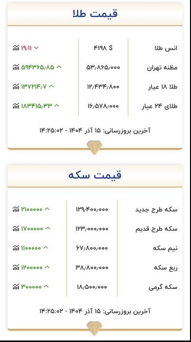 به گزارش پایگاه خبری «عصر بازار» به نقل از ایرنا، اتحادیه طلا و جواهر تهران بهای هر اونس طلا را برای معاملات روز شنبه (15 آذرماه) چهار هزار و 198 دلار اعلام کرد که نسبت به روز گذشته، 19 دلار کاهش داشت. همین موضوع باعث شد که قیمت انواع مسکوکات و مصنوعات طلا در بازار تهران به دلیل افزایش بی سابقه قیمت دلار در بازار غیررسمی همچنان رکوردهای جدیدی را ثبت کند.