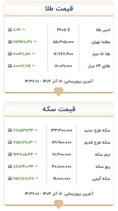 در بازار مسکوکات طلا نیز نرخ ها افزایشی بود، به طوری که هر قطعه سکه تمام با افزایش 770 هزارو 529 تومانی به قیمت 133 میلیون و 300 هزار تومان فروخته شد و سکه تمام طرح قدیم نیز با افزایش 715 هزار و 879 تومانی، 126 میلیون و 900 هزار تومان عرضه شد.
