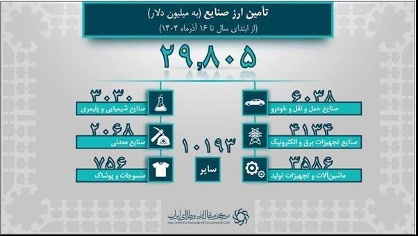 ۲۹.۸ میلیارد دلار سهم صنایع از تامین ارز